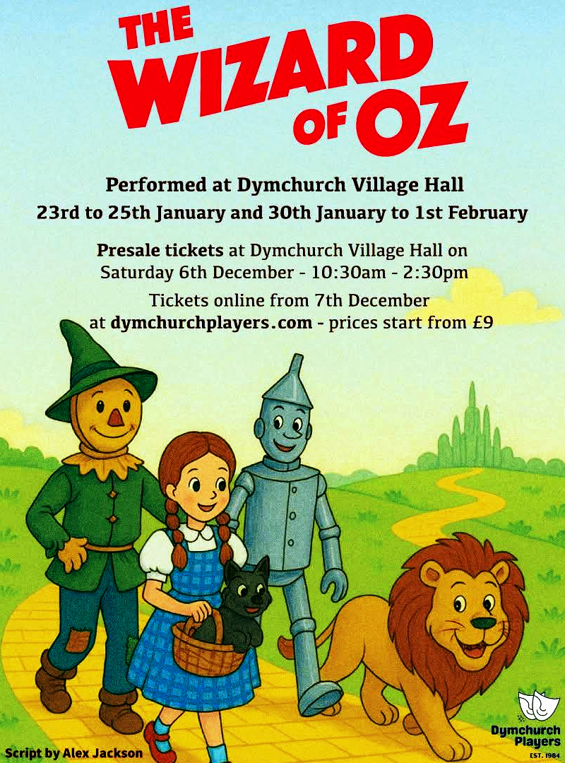 The Wizard of Oz: Jan 23rd - Feb 1st, at the Village Hall.